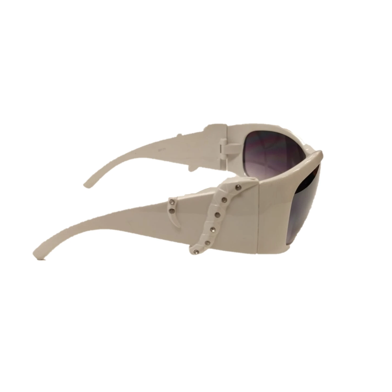 Witte bril met steentjes. Geef je look een speedy of Alien uitstraling!