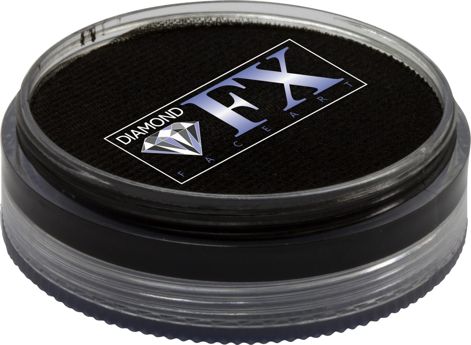 Deze waterschmink op wax-basis is bijzonder goed gepigmenteerd waardoor de kleuren zeer helder op de huid komen. Door de wax-basis van deze schmink is het mogelijk om mooi dekkend over andere kleuren heen te schminken. Diamond FX waterschmink heeft een langdurige dekking. Met de 30 gram schmink verpakkingen kun je 10 tot 15 volledige gezichten schminken.