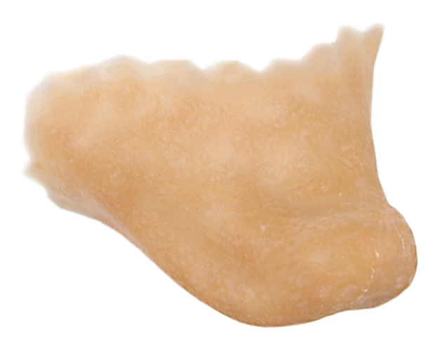 Neem de latex prothese uit het doosje en plaats het op de huid om inzicht te krijgen of de randen goed aansluiten en waar het straks wordt vastgelijmd.