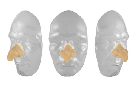 De latex prothese nareinigen met water en zeep en na het drogen (eventueel met behulp van een föhn) bepoederen met Grimas Transparent Powder. In het donker bewaren.