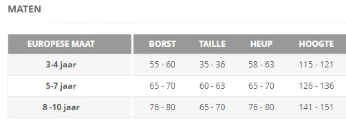 | Maat | S (3-4 jaar), M (5-7 jaar), L (8-10 jaar) |