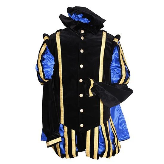 Dit zwarte piet kostuum “Malaga” is gemaakt van fluweel.
