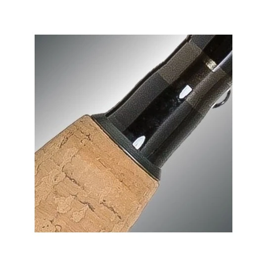 De hengel is fraai afgewerkt met een natuur kurken handgreep, Fuji molenhouden en 14 – 16 SIC geleideogen.
