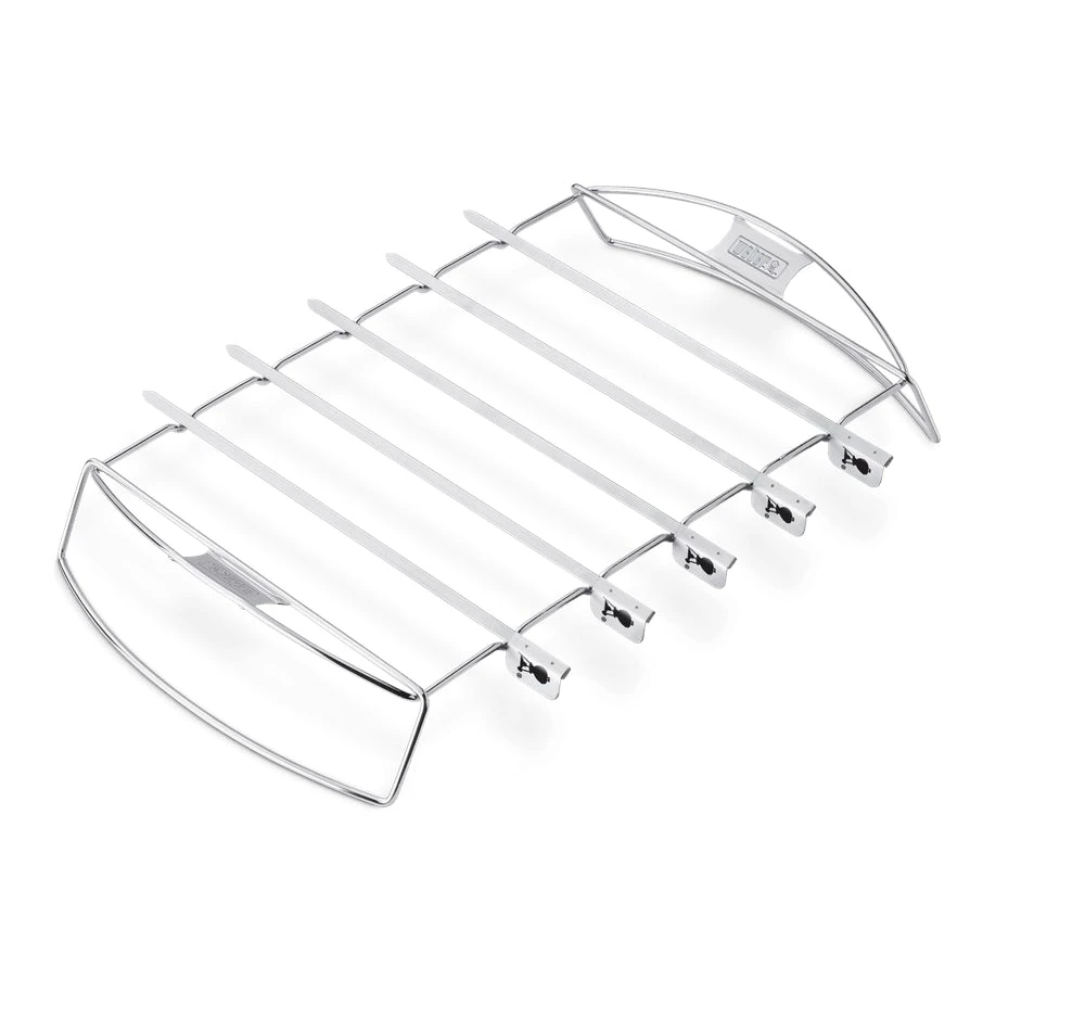 Laat uw barbecuefeest onvergetelijk worden. Laat iedereen zijn eigen spies samenstellen uit een geweldige mix van groenten, vlees en vis. Met de handige kebabset legt u de spiesjes op het rek en vervolgens het rek op het grillrooster. Dankzij het rek zijn de spiesen gemakkelijk te draaien en worden ze telkens weer gelijkmatig gaar.